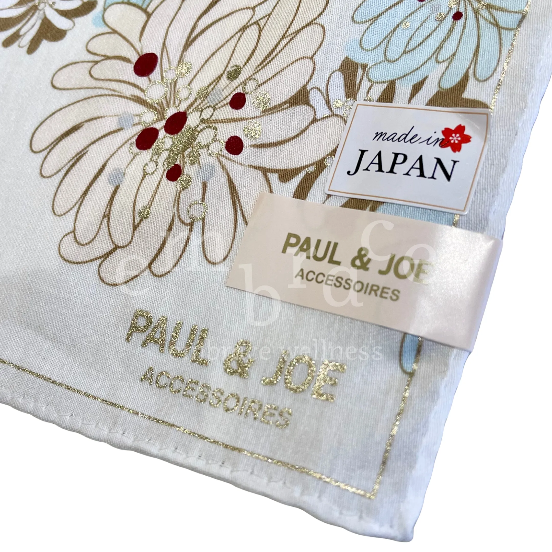 The corner of the handkerchief is embroidered in gold with the Paul & Joe Accessoires signature — a subtle mark of authenticity and quality.